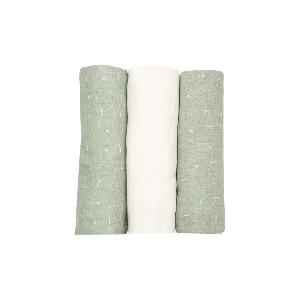 Accueil > Puériculture > Repas > Bavoirs et langes > Lot 3 langes 70x70cm Grafic olive